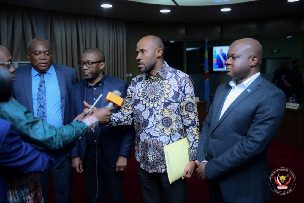 ” Comme vous le savez, depuis le 12 janvier 2023, le président de la République avait pris une ordonnance qui organise le Programme de Développement local des 145 territoires. Nous avons eu l’occasion d’avoir les premiers rapports de différentes agences d’exécution. Les les grands travaux ont déjà commencé. Il y a même de premiers ouvrages qui pourront être livrés dès le mois prochain. Il s’agit principalement des écoles, des centres de santé, et des bâtiments administratifs…On a beaucoup discuté sur les routes de desserte agricole. Il y a 38.000 km qui doivent être faits dans le cadre de ce projet. Là aussi, il y a de premiers acomptes qui ont été versés par le Gouvernement. On a discuté de l’Inter connectivité de ces routes avec les routes d’intérêt provincial et même d’intérêt national. C’est dire que tout le pays est en chantier. Et dès la semaine prochaine, on pourrait avoir tous les détails sur les images du travail qui est fait à la fois par le BCeCo, la CFEF, et le PNUD”, a-t-il déclaré.