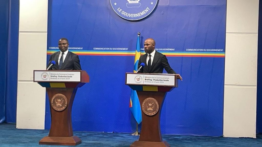 C’est une annonce faite par le Ministre du Commerce Extérieur, Julien Paluku, lors du briefing presse co-animé avec son homologue de la Communication et Médias, Patrick Muyaya Katembwe, le mercredi 14 août 2024.