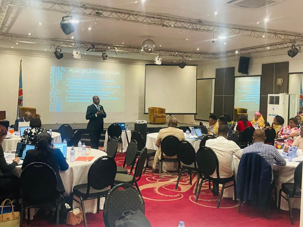 Le deuxième intervenant, Jean-Baptiste Veko du COREF, a planché sur le cadre normatif des finances publiques en RDC. Il a parlé de la Constitution de la RDC, de la Loi du 13 juillet 2011 relative aux finances publiques, du décret du 06 novembre 2013 portant règlement général sur la comptabilité publique, du décret du 08 novembre 2013 portant Plan comptable de l’État, du décret du 11 novembre 2013 portant règlement d’administration des comptables publics, du décret du 29 octobre 2022 portant gouvernance budgétaire et du décret du 31 mai 2023 fixant le périmètre, la structure et le fonctionnement du réseau des comptables publics.